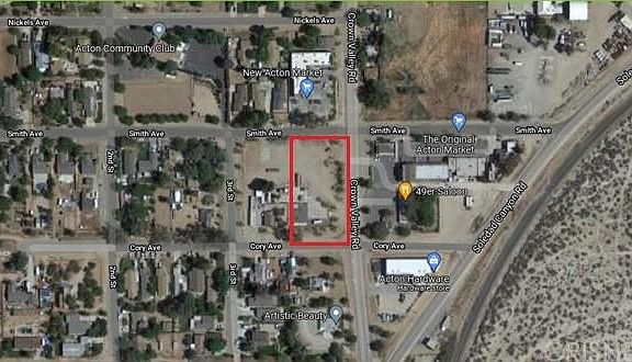 Prime piece of land encompassing half a block in downtown Acton. 5 lots recently combined into 1 and equal to just under 1 acre fronting Crown Valley from Smith Ave to Cory Ave. Flat property , adjacent to paved streets, public water and all utilities in the street. Zoned C-RU (Commercial-Rural) per LA County Regional Planning. Additional adjoining residential parcels also available.