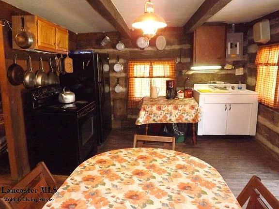 Old hand hewed log home has no well or septic. Outhouse used. Electric in house. Wooded land, lots of frontage. Adjacent to State of Ohio property. Oil & gas rights reserved by previous owners. Being sold in "as is" condition. Age of log home unknown.