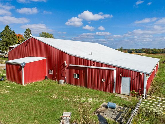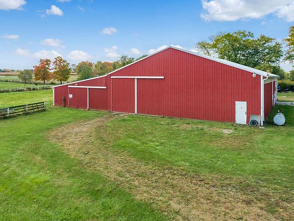Over 7,500 square foot barn on 9.58 acres. This is located about 3/4 of a mile south of Buckeye Lake in Fairfield County. Inside the barn: 11 Horse stalls varying from 12x10 to 14 x10 with feed storage area and tack room. Approx. 53 x55 riding arena/equipment storage area with high access sliding door. Kitchen and living area with utilities. within barn. 30x25 workshop area with high access garage door. All of the barn has concrete floors other than arena area and horse stalls. Barn has well and septic. Some fenced pasture areas.