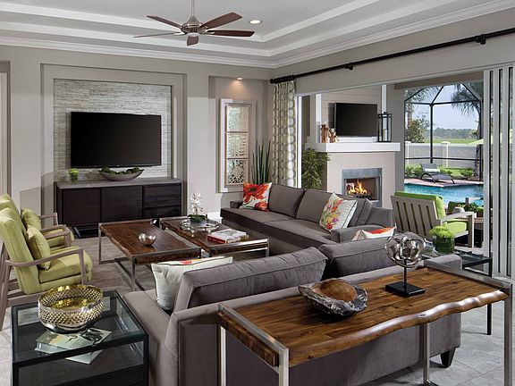 This is a sample house that can be built on this lot.Step through the foyer into the stunning great room with recessed ceilings which seamlessly combines an open view to a gourmet kitchen and casual dining area. The large center island affords plenty of seating and our large walk-in pantry is certain to delight even the fussiest chef. The outdoor living area beckons you to come outside and relax in true Florida style by (or in) your resort style pool complete with Sun Shelf and deck mounted water sprays! You feel as though you are enjoying your own spa like experience while lounging on the sofa. And you'll love the soothing ambiance of the outdoor fireplace under the lanai in every season all year long. Elegant double door entry leads to the pampering master suite of peaceful solitude, while the master bath exudes a Zen-like elegance to re-energize body, mind and soul. Spacious double closets a luxury bathroom with dual vanities, oversized walk-n shower with floating tub with natural lighting throughout! A conveniently located den becomes a private oasis for working, reading, or just for quiet contemplation. The bonus room is perfect for movies, games or exercise. A spacious guest suite on the second floor with massive windows offering lovely views. Don't be surprised when they extend their stay just a little longer. The beauty and comfort of your home may become their favorite memory! Prices subject to change and does not include lot or pool package p