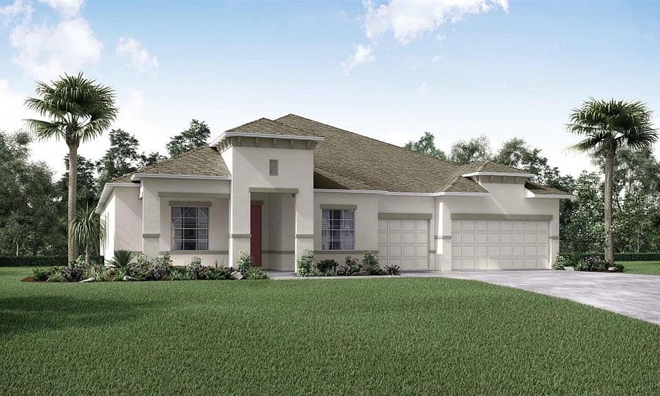 Pre-Construction. To be built. Brand new builder owned 4/3 spec home with estimated completion date of April 2025. CBS construction with full builder warranties. Terrific plan featuring large great room, formal dining room, media / flex area, 3 car garage, lanai, crown molding, solid surface tops in kitchen, gourmet kitchen appliances, extensive ceramic tile flooring and much, much more.