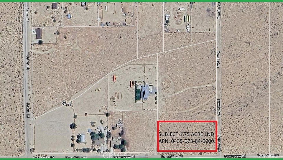 Come and enjoy this 360 panoramic view of the mountains, desert and the valley. Twinkling city light view at night will take your breath away. Live in the country with the conveniences of the city. This 1.75 Acre of buildable land located right on the corner of Desert View Rd and Pumalo Ave in Apple Valley and about 1/2 south from Highway 18 and just 10 minutes from all major shoppings. There are larger and newer custom built Ranch like houses all around this land and all utility should be very close to the land. Excellent location!! Only 25 minutes from Big Bear Lake, the most visited mountainous resort town and ski resort in Southern California. Only about 20 minutes from Johnson Valley where they hold world famous "KING OF THE HAMMERS" off road events every year. Also, Barstow, 29 Palms, Yucca Valley and Joshua Tree are about only an hour away. A perfect land for a custom dream home or buy to invest. Located on the path of the growth and has lot of potentials. MOTIVATED SELLER ALSO SELLING A 4.5 ACRE PARCEL NORTH OF THIS LAND!!