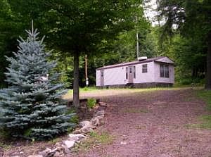 THIS MOBILE IN A SECLUDED SETTING NEAR THE HOAGLAND BRANCH CREEK HAS EVERYTHING NEEDED FOR A GREAT STARTER CABIN.