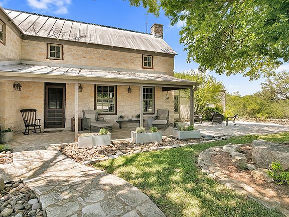 Step back in time into this beautifully restored historic 1857 stone home in the Grape Town area. You will find original stone fireplaces and reclaimed or original hardwood floors, huge wood beams and solid antique wood doors. The main house offers 2 living spaces with high ceilings and solid stone fireplaces and has 3 bedrooms, 2.5 baths and an extra flex space for a home office, bedroom or gym. The primary bedroom is downstairs and offers his/her closets with reclaimed bead board ceiling, an en suite bathroom (which was originally a horse stall,) including the original claw foot tub, and a walk-in shower. The kitchen, again with reclaimed original beadboard and solid wood cabinetry overlooks a fenced garden for morning coffee amongst the greenery. The property has 4 additional original stone buildings, one of which has been converted to a 400sq. ft guest suite and another is the original (working) well house while a third stone structure is ideal for your future wine room. Stargaze on the back patio overlooking oak tree studded rolling acreage and the seasonal which creek runs diagonally through this 15 acre property.
