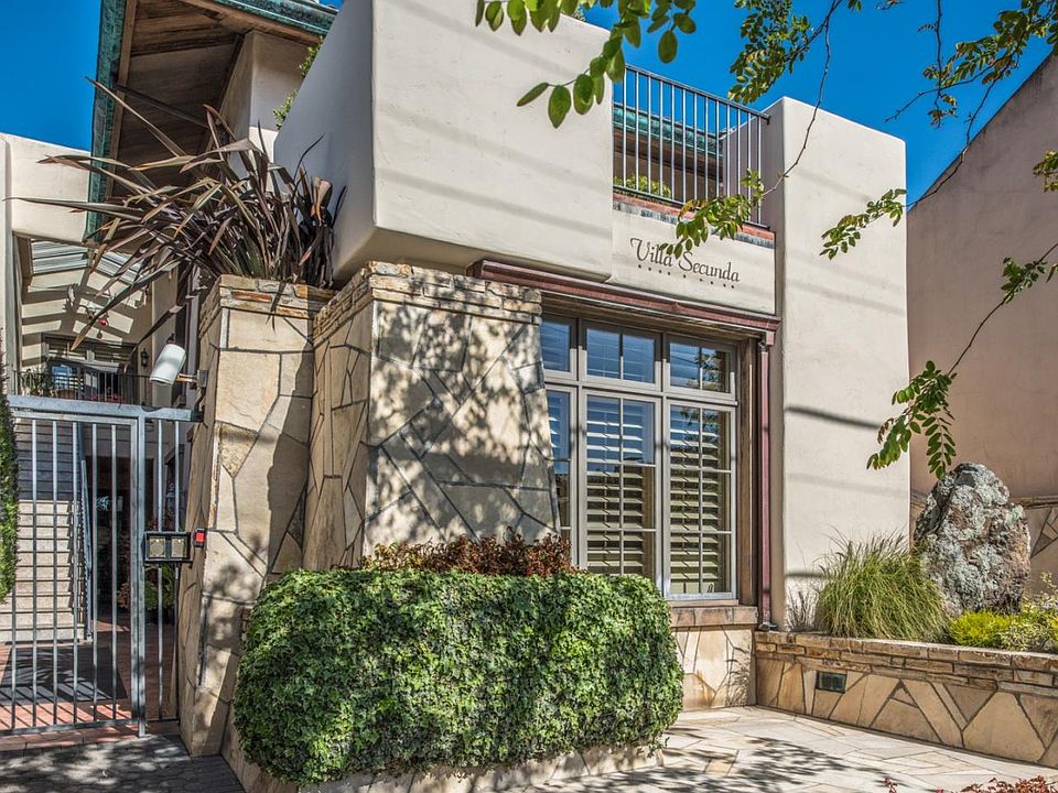 Rare opportunity to own a luxury townhouse right in the heart of downtown Carmel. There are only a couple of these ever built. This is the top level unit with two patios as well as a roof-top deck with a huge view. The ceilings in this unit are exceptionally high and there are windows and French doors everywhere that let in an abundance of light. Limestone floors throughout the living room, dining room, kitchen and hallways. Counter tops in the kitchen, laundry and bathrooms are all limestone. A barrel ceiling in the main hallway adds to the charm of this unit. Each bedroom has it's own full bath. The master bedroom features a huge walk in closet. One of the best features of this townhouse is the huge underground gated parking garage solely for the use of this townhouse and the lower unit. There is a large private elevator from the garage that opens directly into this unit. An additional large storage room is available as well. This is downtown living at it's finest.