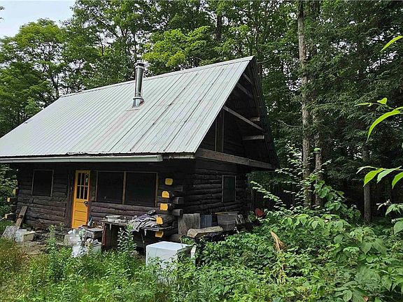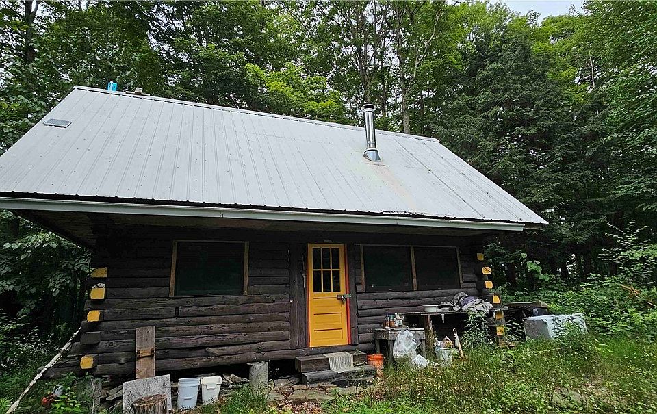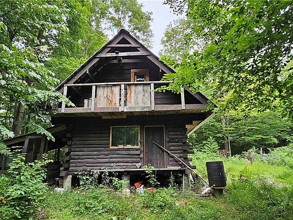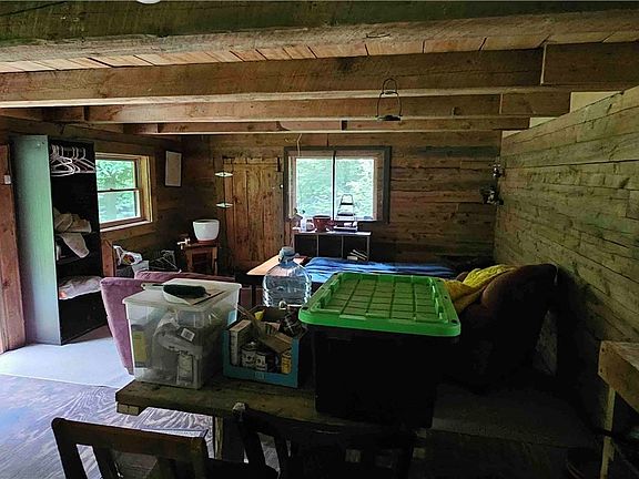 The cabin has a spacious loft with a small, covered balcony area overlooking the mature forest that surrounds the property. Some PEX plumbing installed with an on-demand propane hot water heater and a water storage tank in the loft for a gravity system. No drilled well on the property and the owners have hauled in water when needed and there is an outhouse on the property. Land is gently rolling offering hardwoods and softwoods including maple, oak, ash, and white pine. Adding a few solar panels or a generator would add some modern comforts to this rustic cabin if a person desired to have these amenities.