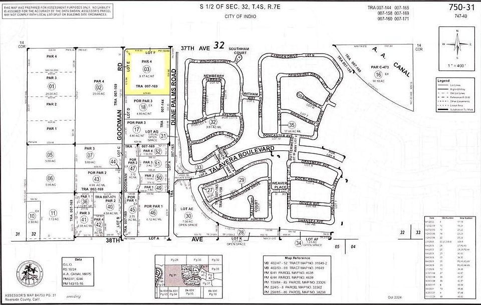 Perhaps the last chance to buy affordable acreage in Indio. 9.17 acres zoned DET-3 which allows 3 homes per acre plus ADU's (Accessory Dwelling Units) if desired. Minimum lot size is 10,000 s.f. Parcel is across the street from Talavera (820 homes) and close to Sun City Palm Desert. Owner motivated. Listing broker does not warrant the accuracy of the information provided. Buyers to do their own research and due diligence.