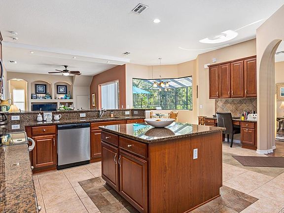 Dreaming of a home you can love forever...just became a reality! Inviting courtyard entry leads into this spacious 2007 5/3/3 pool home w/ 3335 living area. Desirable floor plan designed to accommodate an entertaining lifestyle yet retains a warm ambiance for family living. Interior boasts a gourmet kitchen w/ quartz counters, 42" wood cabinets, breakfast bar, S/S appliances & nook overlooking lanai. Spacious formal living & dining rooms & family room w/ built in entertainment center, 10 ft ceilings, roomy interior laundry, covered lanai w/ custom pavers and relaxing saltwater pool & so much more! Topped w/ a TWO YEAR Home Warranty!
