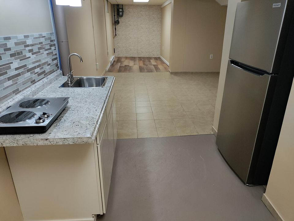Freshly Painted, ceramic tile, vinyl floor, open floor plan, drop ceiling, new kitchen, new bathroom, washer and dryer hook up, outdoor patio Tenant responsible for Electric, cable Landlord responsible for Water sewer and trash. No smoking, quite and clean environment. No oven, portable Cook top