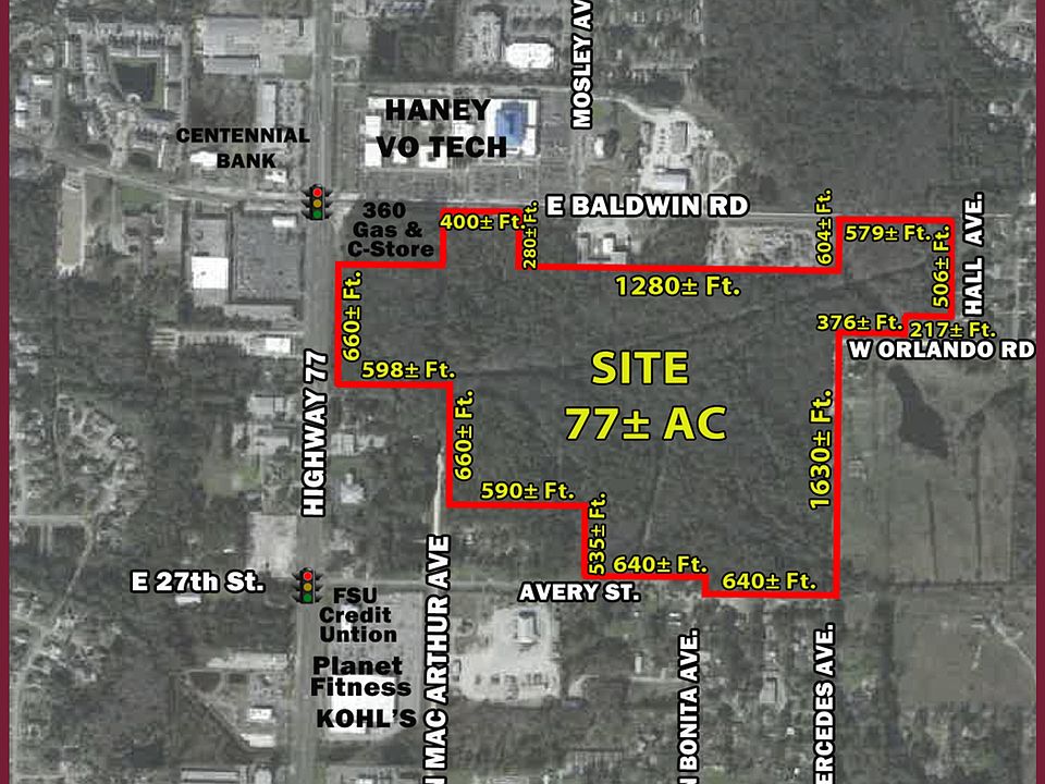 The very best commercial site in Panama City is now available for purchase. This 77± acre tract is located at and around the southeast corner of Highway 77 and Baldwin Rd between the new 360 Gas + C-store and Tonya's Garden, and adjacent to 360 on Baldwin Road. The opportunities are endless for a property with this size and location. Being near the middle of ALL commercial activity in Panama City and Lynn Haven makes this site worthy of your serious consideration. Two median cuts on Highway 77. Excellent location for a commercial development and multifamily on the rear.