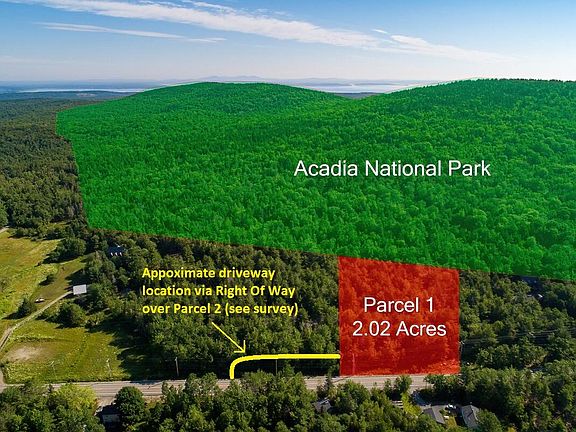 Bordering Acadia National Park a mile from Eagle Lake and a short drive to Town, this sloping lot has rich potential for a primary residence surrounded by nature with an accessory dwelling unit sited elsewhere on the 2+ acres. Or consider construction of a 2-family home. Soil tested and surveyed. Future access via deeded Right of Way over Parcel 2 as shown on survey, with driveway maintenance costs to be split proportionately.