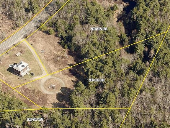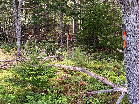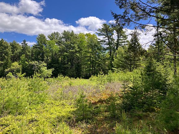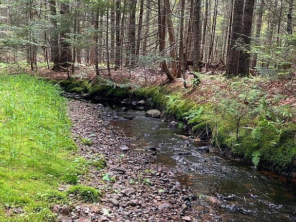 Heath Brook and Richardson Brook converge beneath mature Pines within the eastern half of the property. The western side was previously cleared and offers level, buildable area.