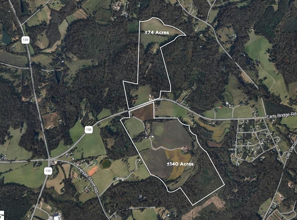 It’s rare to find a property that truly checks every box but this historic farm in Dacusville does just that! If you've been searching for a once-in-a-lifetime piece of land, this is your opportunity. Prime location, rolling and flat terrain, flowing creeks, breathtaking views, and abundant wildlife; this property has it all. Opportunities like this don’t come around often! The owner is open to owner financing and is willing to sell the property as a whole (214 acres) or split into two separate tracts (74 acres and 140 acres). Plus, the 140-acre and 214-acre purchase options come with a newer John Deere 5100 tractor and a Bobcat skid steer!