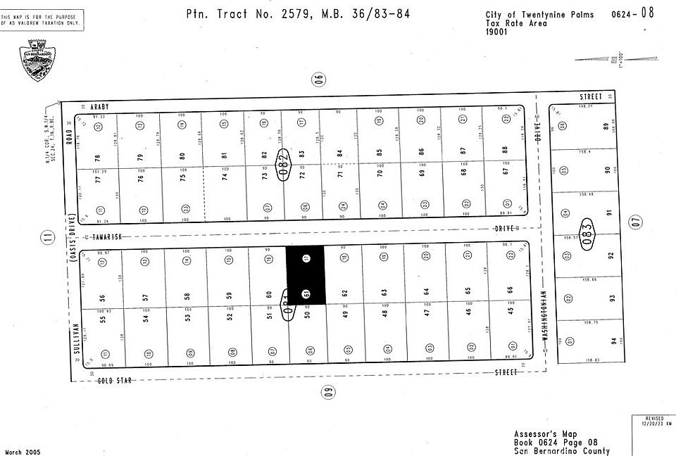 Land for Sale in Twenty-Nine Palms close to residences on paved street. It's the Location location location! 12,420 sf residential lot in the beautiful Hanson Area known for its amazing views. This neighborhood is on a gentle slope that offers outstanding vistas of 29 Palms and the Bullion Mountains. Quiet street. Water, power and pavement. It is about a 5-minute drive up Utah Trail to the Joshua Tree National Monument 29 Palms gate. Plus, it's a short drive to downtown 29 Palms for restaurants, cafes, bars and boutiques and not far from Copper Mountain College. Designer homes in the area. Ideal for a variety of home types and financing may be available. Parcel number is 062408117000. Legal description is: TRACT 2579 LOT 61 TRACT NO 2579 LOT 61 EX MNL AND WATER RTS WOSE. Latitude and longitude coordinates are: 34.127107,-116.033617