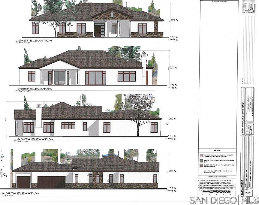 Wonderful time to build your custom home. Lot has plans for single level ranch home. 4br/4.5ba 3100 sqft 3 car garage, plans are in final review with the City of Poway . Ready to pull permit all utilities to the lot. Building pad is 18,000 sqft, access the lot at the end of cul-del-sac.