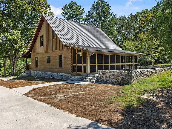 Hunters Paradise..As you are driving onto the 70-acre property, you will pass one of the greenfields on your left. Soon the road opens to the creek with the beautiful 3 bedroom, 2 bath cabin sitting on the hill. As you cross the creek and start up the concrete driveway, you will notice the gorgeous, hand-hewn cypress logs that were brought in from Florida. The cabin has several updates including new windows in 2025. Just off the screened in back porch, there is a large rock patio with a fireplace, that would be great for entertaining. There is also a 11 x 21 lighted building that would make a great outdoor kitchen. The property also has a 12 x 14 skinning shed with a flush out drain, located behind the cabin. Down to the right sits a 30 x 40 pole barn next to another greenfield.