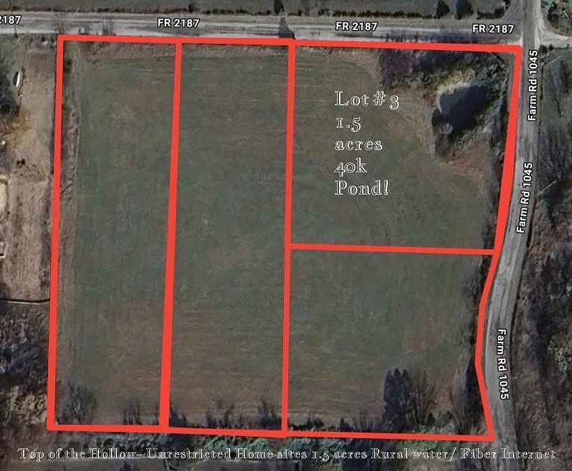 Unrestricted building sites! Rural water! Level Lots! Paved frontage! Fiber optic cable! Come build your home on one of these beautiful home sites before they are gone!