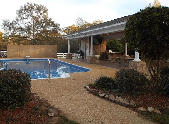 Greeted by tall columns, this beautiful home sits on 4.80 acres. This 4 bedroom, 3 bathroom home contains 2 stories and 3,949 square feet. You can sit out back and relax by the pool at the pool house behind a concrete privacy fence. The home features a huge sunroom out back overlooking the pool. There is also a workshop on the property! The home has beautiful landscaping and a circular paved driveway!