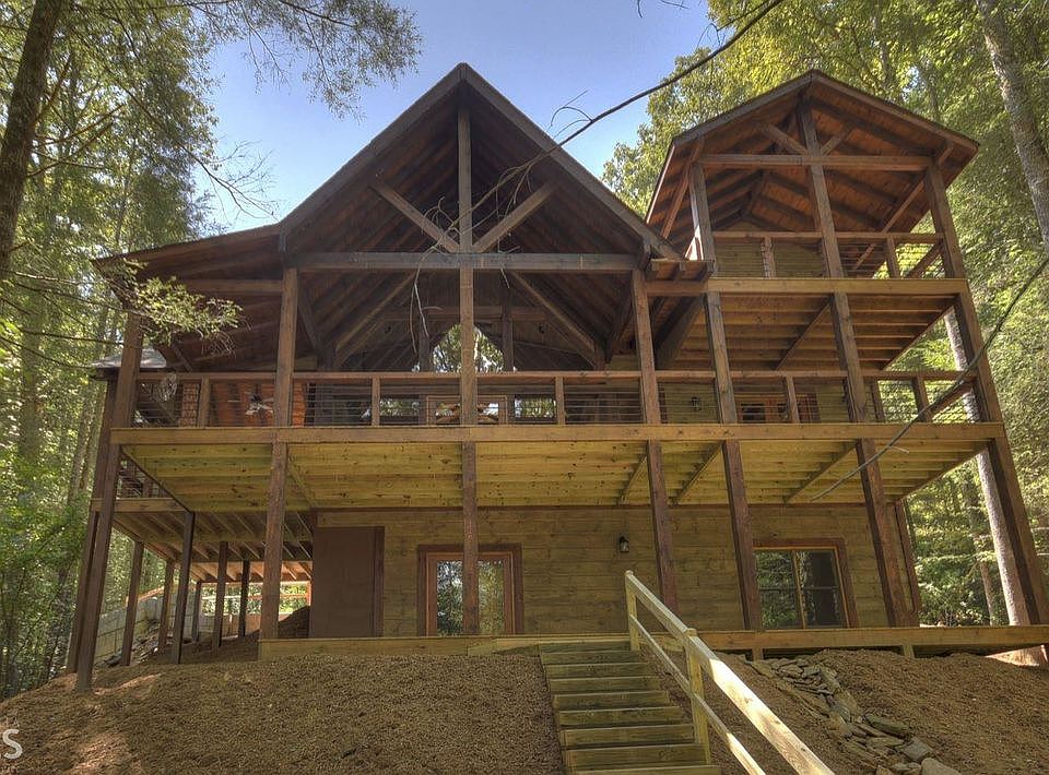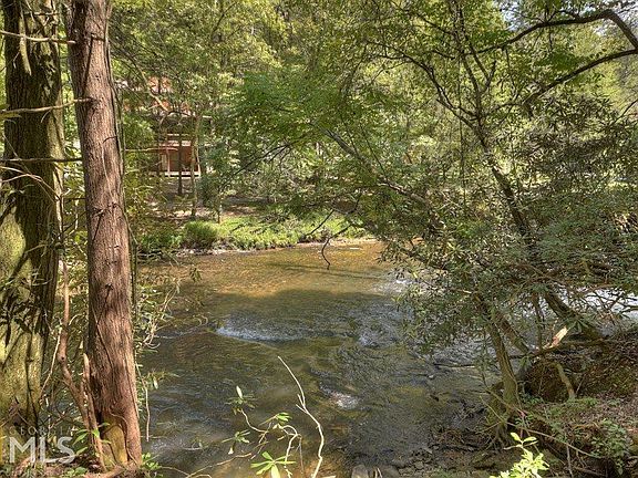 NEW Lodge Style Rustic Retreat overlooking the rushing rapids of MOUNTAINTOWN CREEK! This 3BR/2.5BA home is perfectly situated on 2.95 acres in Fish Tale Cove, a PRIVATE gated community, less than 10 min. from Downtown Ellijay. Prepare to be WOWED w/ 190 feet of frontage on Designated Class A Trout Stream! You will love the massive post & beam covered porches, party porch w/outdoor fireplace & lg deck overlooking the rapids. Handcrafted finishes throughout; Open great room w/soaring cathedral ceiling & stone fireplace is perfect for family gatherings; beautiful 2 story wall of windows; well appointed kitchen, half bath & dining. Master & laundry conveniently located on main. Huge LOFT plus 2 bedrooms & bath on upper level. Full unfinished terrace level.