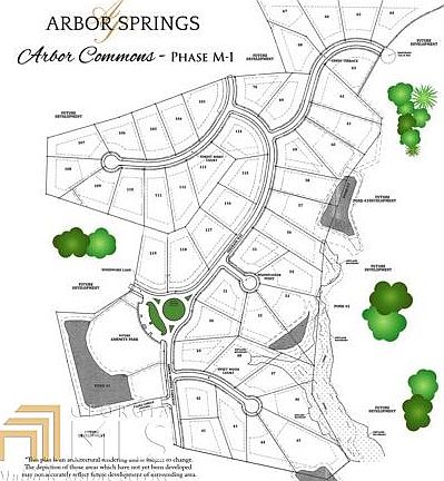 New Phase M-1, Arbor Commons, in Arbor Springs Plantation. Possible slab homesite on cul de sac. BUY Your Lot Now, BUILD When You Are Ready, BRING Your Floor Plan. C&R's, Architectural Control Guidelines. Easy access to I-85, ATL Airport, Pinewood Studios and all the ATL has to offer. Golf Course Community.