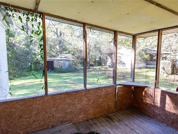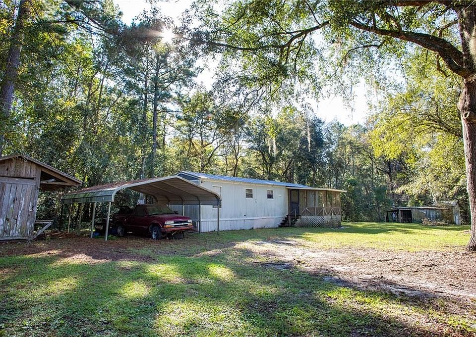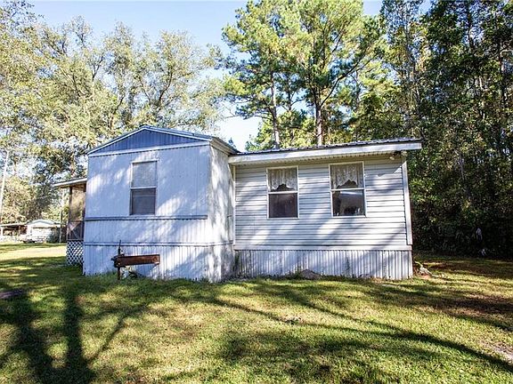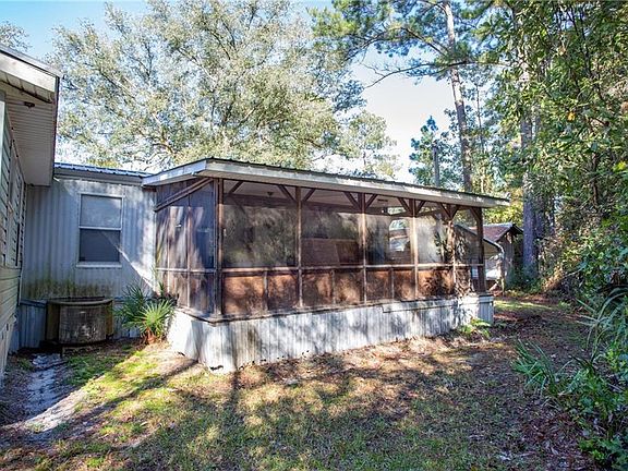 Mobile home with 2 bedrooms, 1 bathroom, open concept living with kitchen and family room! This home offers a screened in front porch and covered backporch, storage building. It has a shared well with neighboring property. Needs some TLC but great buy! This home comes partially furnished! Comes with adjoining lot for a total of 0.64 of an acre.