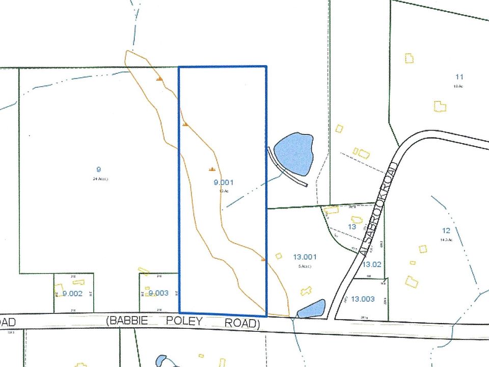 13 wooded acres in the Babbie Community between Andalusia and Opp. The plat shows a creek diagonal across the property.