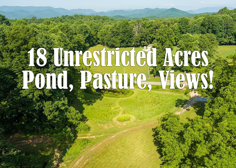 Remarkable, rare opportunity to own a large UNRESTRICTED tract of mountain land with the ideal balance of flat pasture, views, and rolling woodlands. The rushing stream, charming pond and year-round views add to the property's appeal. Two large parcels are included, adding up to 18 acres of paradise. The property is unrestricted - so bring your RVs, tiny homes, manufactured home... or build your dream cabin on the private wooded homesite, which features gorgeous long-range mountain views. Dreaming of a HOBBY FARM? The pasture area could be fenced for your horses, goats, chickens or other furry friends. There are 3 underground power transformers in place. Multiple home sites allow for a family compound now or as your family grows. Paved, super-easy access convenient to Franklin NC and Clayton GA. Welcome to the idyllic acreage you've been waiting for!