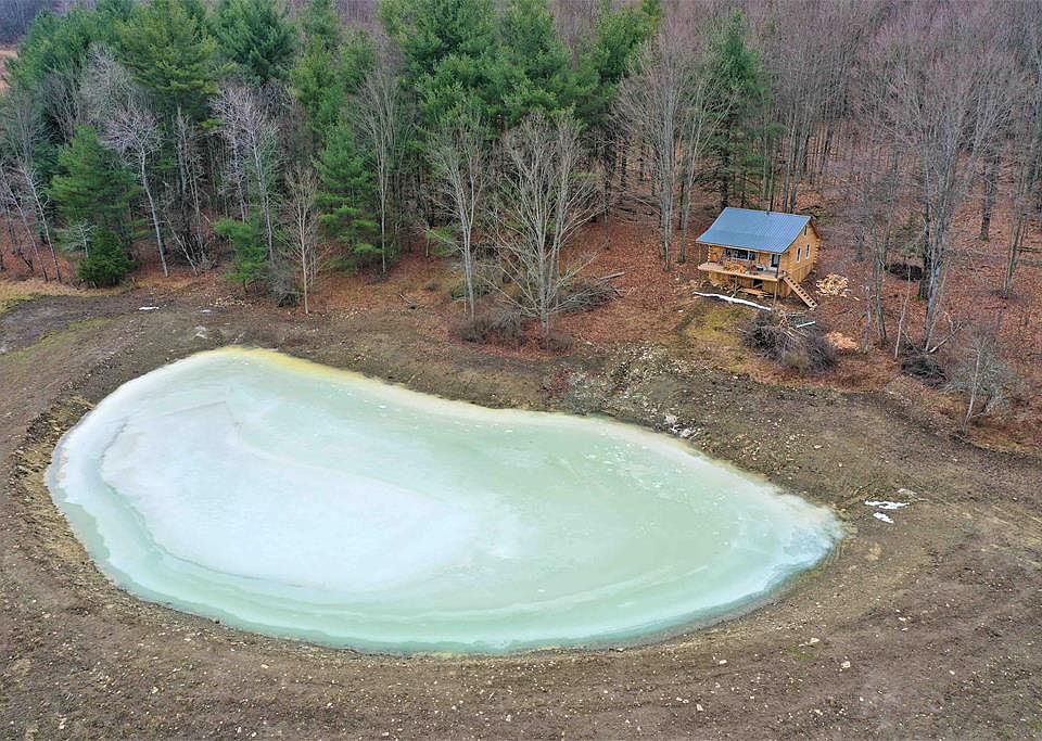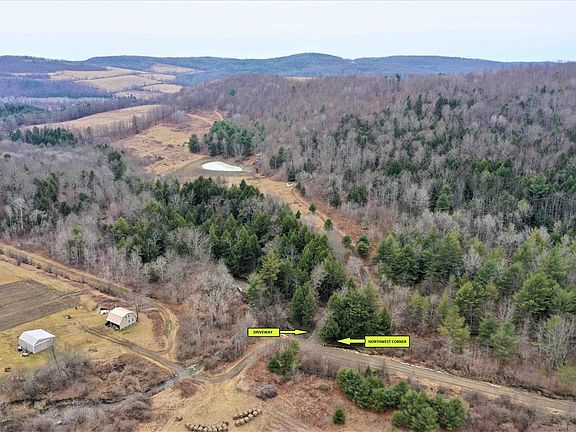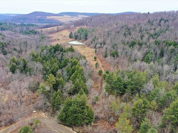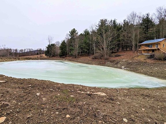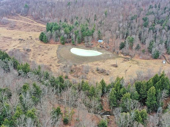 Rustic 1 room cabin has an existing wood stove and is finished with tongue and groove pine. Enjoy the covered porch overlooking the spring-fed pond that was recently installed, and has a maximum depth of 14 feet. Off-grid cabin does not have any utilities, but an existing spring has been improved to provide a source of water near the cabin. Nice mix of land including nearly 30 acres of open ground comprised of three fields. Each field has been left fallow for some time with some areas and trails being mowed in recent years. Fields could be mowed down and used for agriculture or left fallow.