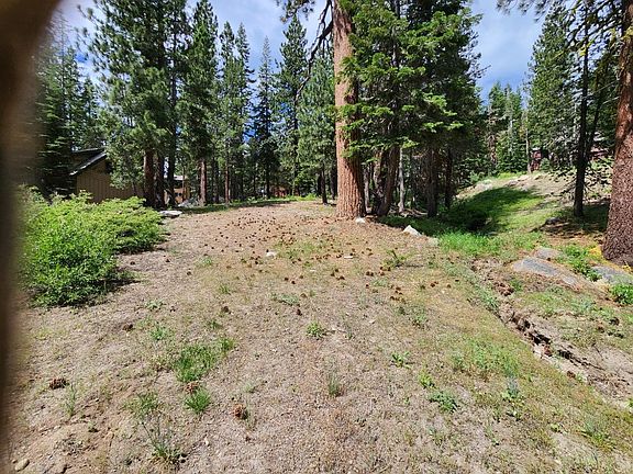 Gentle upslope Bear Valley lot on one of the quietest streets in the Village. This lot goes street to street and is graced with an immense pine tree. Easy access from either side of the lot. Ski back to your house from the Bear Valley ski area. A greenbelt seasonal creek graces the right side of the lot.