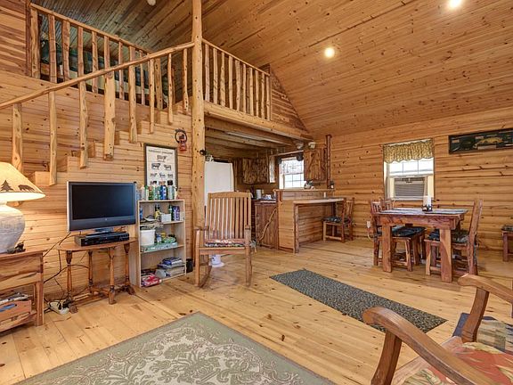 Secluded drive up Frog Pond Road to your lush near 40 acres surrounding a custom built log cabin. Very private from your covered front porch. Easy to watch cattle/horses, livestock. Productive hay ground for several cuttings yearly. Estimate 2 groves of trees, timber for cattle cover, recreational or hunting.Easy paths through acreage. View Large pond/lake from cabin, and stocked pond also nearby. Excellent cleared fencing around property. Log home has pine floors, tongue/groove pine ceilings, upstairs loft, master on main floor and many conveniences. All furnishings convey including appliances, furniture,dishes,etc. Build dream home while you live in this log guest house.So much to do here makes this the All American Dream. No restrictions, close to town, Springfield and Branson