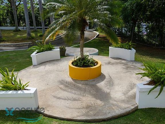 Hacienda Alto Quintin-This unique home, with a total of 3,335 s/f of living area, was inspired by the Spanish hacienda style and the Pueblo style of New Mexico. It is a fusion between these two traditional and colorful styles. This house has many details that were custom made especially for her. It's like living in a work of art. The different types of stucco finish, the gallery walkways surrounding the main fountain, and his creative work on the tile patterns in the floor, bathrooms, and kitchen make this home one of a kind. Cathedral ceilings that let in natural light and an open floor plan will give you a good feeling of space. On the first floor the house has two porches, one of 129 s/f and the other of 174 s/f, 3 bedrooms, 2.5 bathrooms, kitchen, laundry and a high ceiling great room with the formal dining room and living room. The main room is huge, with its dressing room and its bathroom. On the second floor it has a library (art studio or home office) and an open terrace of 1,701 s/f ideal for spending time in the afternoons with family and friends. You can use the basement for storage or easily transform it into a wine cellar. The 807 s/f garage has plenty of room for 3-4 cars. One of the attributes that gives a lot of character to this plantation house is the small square in front and the outdoor fountain. If you like to enjoy nature, this will be your favorite place. The lot is 6,005 square meters completely surrounded by trees and lush landscaping with over 50 palm trees and island ferns making it very attractive to the eye and at the same time very private. Hacienda Alto Quintin is located in Quebradillas, a beautiful small town in the northwestern part of Puerto Rico. It is located just 35 minutes from the Aguadilla Airport and 10 minutes from the beach. For presentations it is necessary to book at least one week in advance..