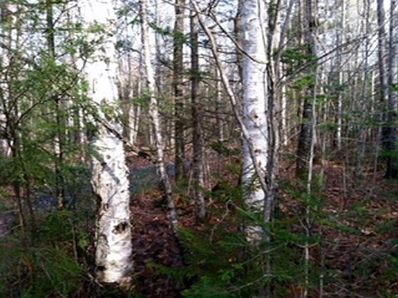 28.8 acres of secluded mature woods and a spring. No swamp and you can ride an ATV or snowmobile to the ocean from here, Hidden, but close to services. Gravel knolls on the property for building a road to your future camp.