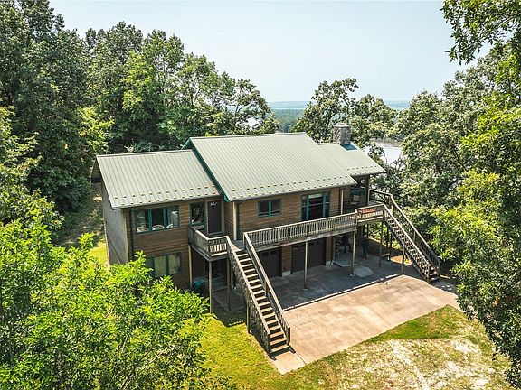 Perched majestically on the bluffs overlooking the Mississippi River, this exceptional 2-story cabin offers a breathtaking sanctuary spread across 154 acres of wilderness. Upon entering, the spacious living area welcomes you with floor-to-ceiling windows that frame panoramic views of the river below. Hardwood floors & knotty pine walls create a warm, inviting atmosphere, complemented by a magnificent wood-burning fireplace that serves as the heart of the home. For outdoor enthusiasts, the expansive property is a paradise. Hunters will appreciate the abundance of wildlife roaming through the mixed timber & open food plots. Nature lovers will revel in the sight of eagles soaring above the river, while fishermen can explore the 2 stocked ponds. Additionally, you will find 3 garages (2 detached, 1 attached) provide ample storage for vehicles, boats, & outdoor gear. Just a short 5-minute drive away lies the boat ramp, offering convenient access to the Mississippi River.