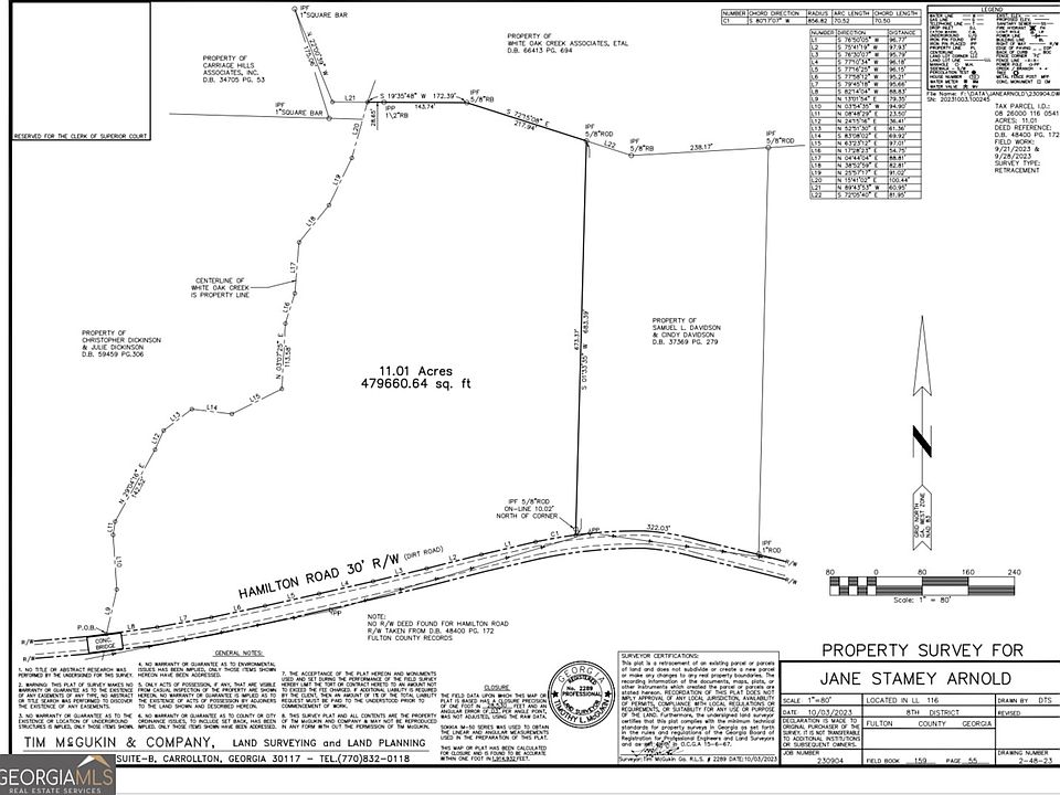 11.01 Beautiful Acres in sought after Chattahoochee Hills in rural South Fulton County! Adjacent to beautiful White Oak Creek and surrounded by a stand of wonderful mature hardwood trees* Several opportunities for a building site on the east (right) side of the property where you could have your own personal Serenbe (which is just 2.5 miles away) lifestyle*880 feet of frontage on Hamilton Road and 1,000 feet of frontage on White Oak Creek*This property is located in a beautiful area of many other estate type settings in a protected from overdevelopment area, you will Fall in Love with the serenity and the sounds of nature*Easy access to Hartsfield Jackson Airport, shopping in Newnan, South Fulton and much more! Recent Survey available-The gentle terrain makes for a great place to set up a homestead lifestyle for animals or gardening*Located in the city limits of Chattahoochee Hills but GPS might show the address as Hamilton Road, Palmetto GA and running along and east of White Oak Creek*Come Feel at Home