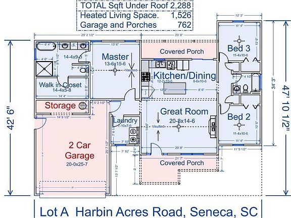 A BRAND-NEW HOME, located just outside the city of Seneca, SC. And an amazing Opportunity! This 2,288 square foot home has 1,526 sqft of heated living space, 3 large bedrooms, 2 full baths, 2 car garage. You can entertain your guest and family for years to come and enjoy the serenity of nature, with the covered front and back porches! This home is designed with a split bedroom plan, with the Master suite on one side and 2 bedrooms, a bath on the other, and a Large Open Great Room in the middle. And There is NO HOA! The Great City of Seneca has so much for the whole family. Just minutes away from three major lakes Jocassee, Keowee, and Hartwell; and the beautiful nature of the Blueridge Mountains. In additional Clemson University is a very short drive away. This lot is less than an hour from the city of Greenville, and not too far from Atlanta, Georgia, or Charlotte, NC. And you won’t have to go far to find great eats, entertainment, fitness centers, shopping, and PRISMA Hospital. This area is known for the many waterfalls and nature trails, along the Blueridge Mountains! Oconee County is full of Beautiful Nature that you, your family, and friends can enjoy for years to come. This is your opportunity to own a beautiful lot in a wonderful City! A site for your next Brand NEW Home, at an Amazing Price! This builder is able to build this plan or any other plan on this lot or any other lot. Please call for details.