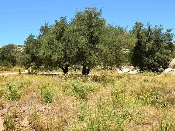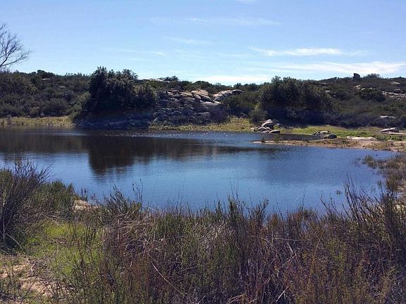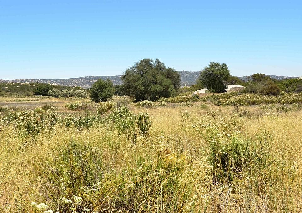 Beautiful 40 acre tax parcel of flat land pasture with oak trees and a pond and an 80 acre tax parcel with a seasonal waterfall and amazing view-forever building sites. Please note: the photo of the pond is from 2020. In prior years (2013 through 2020) The pond has held water year round. In seasons of severe drought, these "farm tanks" (ponds) may be depleted of water. This property is a single parcel with two assessor tax parcel numbers. See the map in the Documents section for clarity. The San Diego Building Department recognizes this as a single "legal" parcel.
