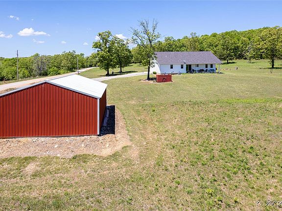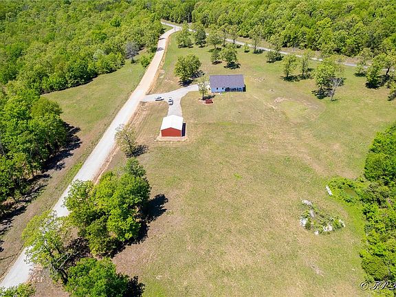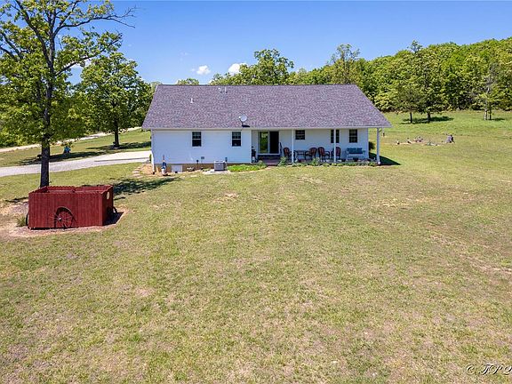 The house has an open floor plan and beautiful wood flooring in the living room, hallway, and third bdrm/office (with no closet). The kit, baths, and laundry have ceramic tiles, while the two bedrooms have plush carpets. The kitchen is a chef's dream, with 40-inch cabinets and a nice pantry area with a center island. All kitchen appliances come with the house. The outdoor space is perfect for entertaining, with a covered front porch measuring 32.8x5.4 and a covered back porch measuring 30x7.6. Imagine relaxing on your porch while enjoying the fresh air and great views. Home can be bought with the 25 acres for $400,000 or just 7 acres and home for $350,000. This home is just 5 miles from Bryant Creek and the North Fork of the White River. It is centrally located between many different towns. The closest town is Dora, about 5 miles away, which has the Roy's Store, Gas Station, Feed Store and Restaurant, Dollar General, Post Office, Dora School, and many Churches.