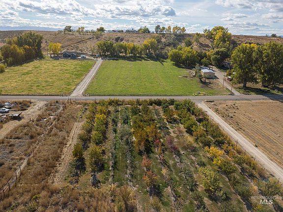 Breathtaking acreage waiting for you to build your dream home. Just over four acres of beautiful land nestled into the base of a hill, and lined with mature trees. Stand back and take in the fresh air while admiring the views from the property overlooking Owyhee County and the stunning orchard across the way. Pasture is fenced, has irrigation, and is ready to go.