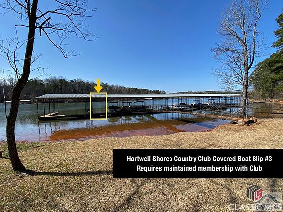 Great Residential Lake Lot with exclusive use of Boat Slip through Hartwell Shores Country Club - renewed yearly. Connected to Army Corp of Engineers lake front land and Hartwell Shores Country Club and currently maintains annual dues for access to Covered Boat Slip #3 of the Country Club between the lot and the lake. This is not a mandatory membership and it's not a Home Owners Association, it's a country club membership. The amount is $215.00 annual dues and goes up if you rent a slip: $400 for uncovered slip; $815 for covered slip. There is a one time initiation fee to join - $315. As long as you pay every year on time you will maintain exclusive access to the boat slip #3. Country Club manages the moving in and out of the covered slips as the water goes up and down. They recently replaced a lot of wood on the ramps to the slips as part of regular maintenance. Currently the Property maintains the membership ($215) and the Covered boat slip ($815) - both annual fees due in April each year. Also conveniently located 1.8 miles from Poplar Springs Recreation Area and less than 4 miles from Tugaloo State Park. Lavonia City Water and Lavonia EMC service the area, but nothing is hooked up at the lot