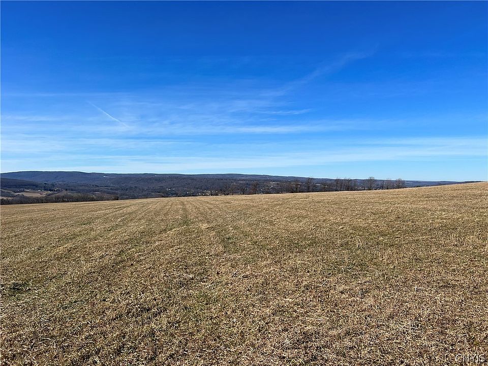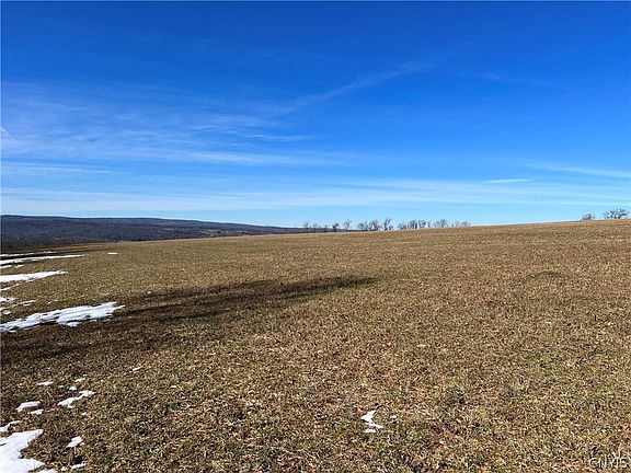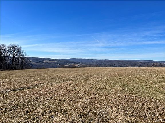 In the recent past, this property was used as a sheep farming operation that was a successful venture. Currently, the 85 acres of farm fields are used for producing hay with a good portion of the fields fenced with high tensile fencing. When the fields where in production, there was a nutrient management plan in place along with the application of lime to increase the productivity of the soils. The majority of the soils are desirable well-drained silty loam type Langford, Erie and Bath soils. Farm fields on the north side of the road are almost level with a south facing gentle slope. Fields on the south side offer a gentle slope towards the woods facing south for an excellent solar exposure. No pesticides, herbicides or chemical fertilizers applied for over a decade offering potential for organic certification. Elevation of the property peaks at the road and gently slopes down the hill towards a wooded area where there are tall majestic oaks, maples and large white pines. Among the trees are two older log cabins in a state of disrepair. The property descends to a gorge with a stream that meanders along the southern border. 15 minutes to Ithaca and Cornell University.