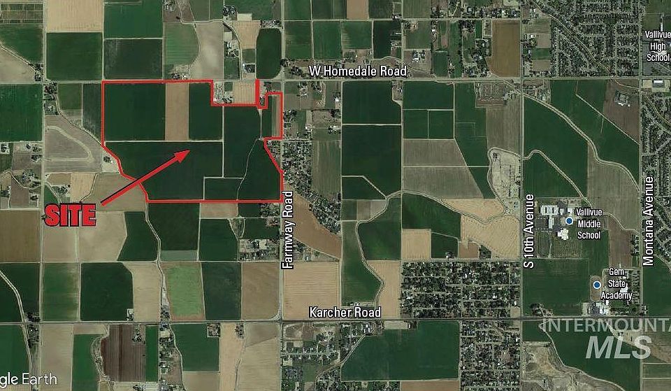 204+- acres in Caldwell. Surface rights through Wilder irrigation district as well as a supplemental well right for 168 acres. Close proximity to Karcher Rd and schools.
