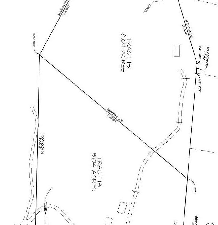 The parcel being sold is the top half of the survey, A new legal description will be provided along with recorded easement. Perc test is complete. This is a private unrestricted bottom land on mountain property. It is off a paved road and very private with a creek that runs thru. You can hear water moving and is very tranquil setting. It is covered by large hardwoods. Wildlife abounds in this area, and is near hiking trails, wineries. This is an 8.04 acre tract of very useable land being split from 16 acres. It will share driveway with current owner. It is possible to put in another drive way away from sellers home. There are several multi million dollar homes in this highly coveted area.
