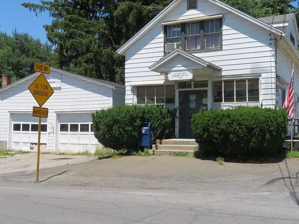 Nice little building on a corner lot that currently houses the Stuyvesant Falls Post Office. They are on a month to month rental. New owner will have to negotiate lease. The second floor has a one bedroom apartment currently rented. This property also comes with an oversized two car garage or barn with high ceilings. Nice private back yard . The building is being sold as isrents are $1625. a month