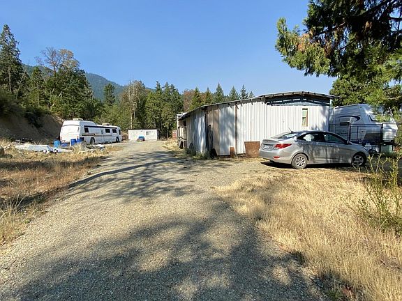 Diamond in the rough!! 5 beautiful acres in the Applegate River Valley! This acreage has a nice mix of hardwoods and evergreens, with territorial and valley views from every angle. The single wide 1979 mobile home holds the home site, with another pad below allowing for additional potential development. The upper pad has multiple outbuildings, including a shop with a grease pit, secure dog kennel, and a conex storage container while the lower pad boasts an additional conex container and open space for your improvements. There is power to all of the buildings, a septic system is in place and there are 2 functioning wells. Both the driveway and pad are nicely graveled and well maintained. The property is gated and affords a high level of privacy and security. Don't miss this opportunity to build your Oregon Dream!