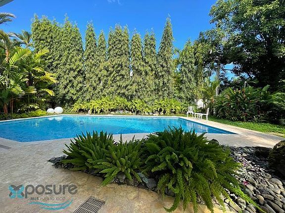 New listing! Custom-built home located in the exclusive Garden Hills gated community. With an impeccable design, this tropical-style residence sits in a beautifully landscaped 1,372 square meter corner lot and comprises approx. 6,000 square feet of living space. This contemporary, one level home offers an open space layout with a grand entrance, formal dining room, gourmet eat-in kitchen with large center-island and adjoining family room, generous living room with glass windows and doors that lead to an inviting terrace overlooking the pool and patio, 4 bedrooms, 3 full baths, 1 powder bath, home office, additional separate flex room with full bath, numerous storage closets, and full laundry room. The master suite opens to an open terrace, offering views of the stunning natural surroundings. All rooms are bright and airy, enhanced with oversized windows. This home is equipped with water cistern and electric power generator. Unique and very private, its verdant gardens provide a very peaceful and private setting, ideal for both relaxed family living and entertaining. Located only minutes away from the best schools and restaurants in San Juan..