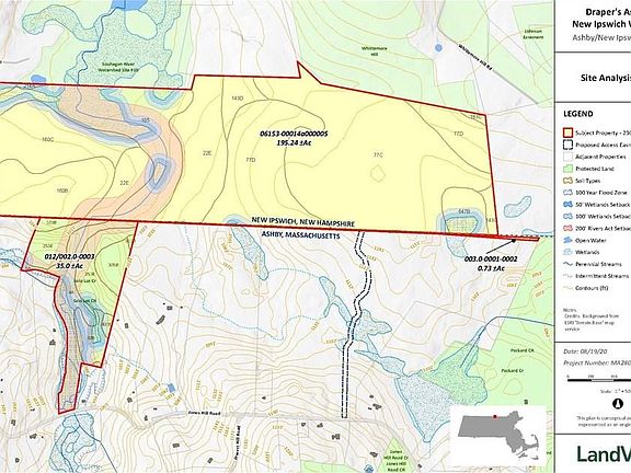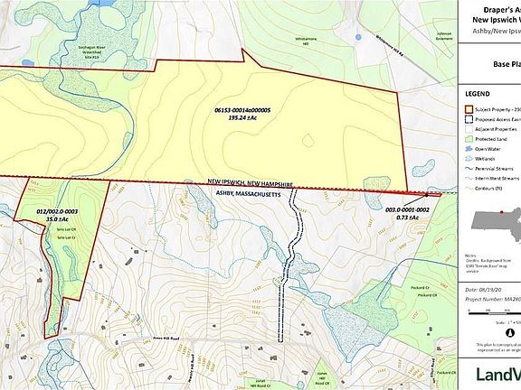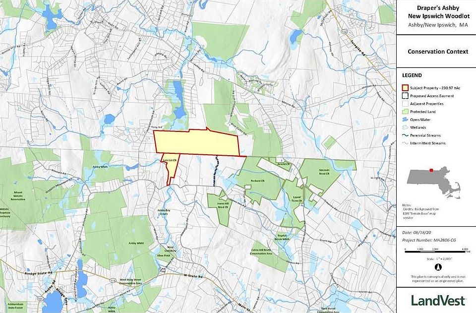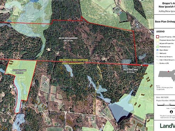227 total forested acres with 60 feet of frontage along the north side of Jones Hill Road in Ashby, MA and extends into New Ipswich, NH. 35.73 acres are in Ashby, MA and 192 acres are in New Ipswich, NH. The property is covered by a permanent Conservation Restriction held by the New England Forestry Foundation. The property has been professionally managed by professional foresters for many years. A newly constructed 2000'deeded Right of Way provides access to the property. There is no legal access to the property from New Hampshire besides the ROW from Jones Hill Road in Ashby. A new road was constructed within the Right of Way from another property on Jones Hill Road to the New Hampshire border to provide access for forest management purposes. The Skowhegan River runs through the property. A new Forest Inventory was completed earlier this year which shows a growing forest with a diversity of species with an estimated current total timber value of $131,162.