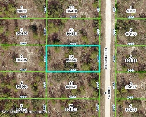 This is a 20000 square foot, vacant land. This home is located at 0 Kingbird Road Rd, Weeki Wachee, FL 34614.