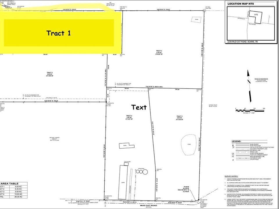 5 Acre tract for sale, 6 acres behind it also for sale (tract 2), listed separately.