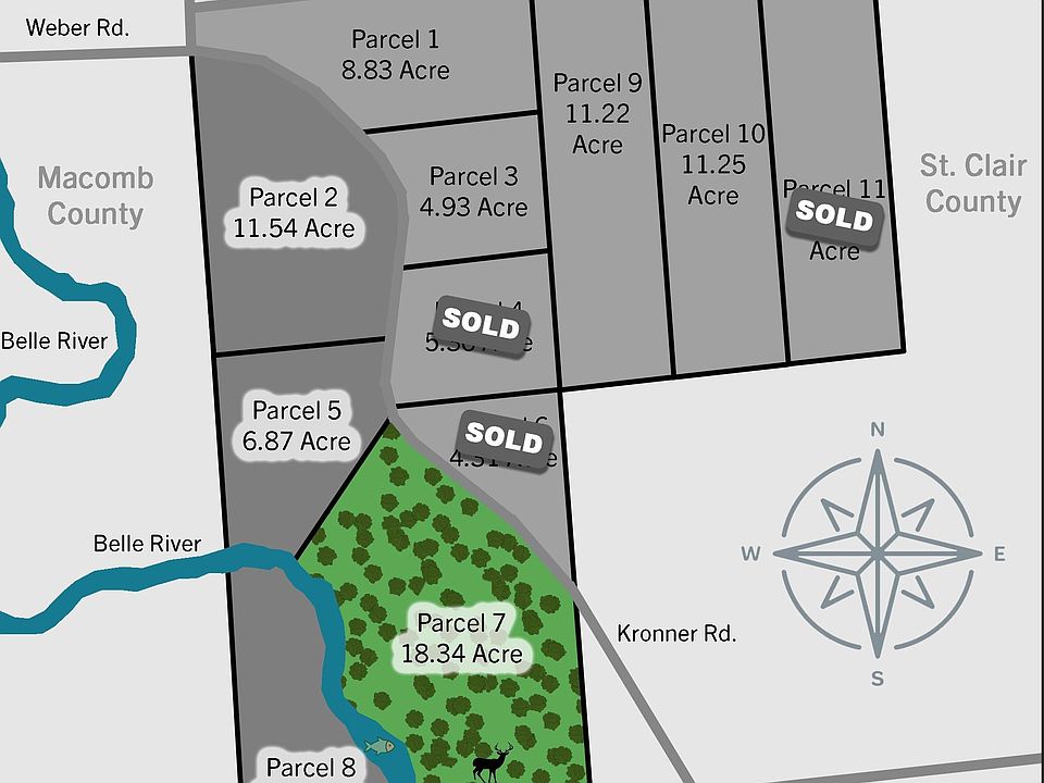 PRICE REDUCED!! Private hunting and fishing on the Belle River - first time on the market! An incredible opportunity to own an 18.34 acre wooded parcel in Columbus Township just off of Meskill. This parcel borders the Belle River with and incredible 926 ft of frontage! 851 ft on Kroner Rd x more than 576 ft deep. Sellable parcel splits are STILL available! Close to Macomb County, this property was recently split from a larger parcel. Information available on bank lot loans.