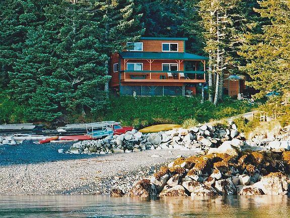 There are currently four cabins on the property: 1) Halibut Hole is the first structure you see when you hit the beach. Downstairs houses a cozy apartment, complete with bedroom (queen-sized bed, desk, storage shelving) and a combined kitchen (apartment-sized fridge, full-sized propane stove & oven, double sink), dining/living area, with a woodstove. Upstairs are two bedrooms, one with two twins & a desk, the other with 1 double bed & 1 twin bed. This cabin is serviced by an outhouse just 2 dozen steps away, WITH an ocean view, of course! 2) The Main House (poised on a 50-foot bluff looking out over Kupreanoff Straits) is 30X40, with a half-loft bedroom (King bed or separate into 2 twins) above the open kitchen/dining/living area & an addition on the East side that includes a mud room, pantry & 1/2 bathroom with regular flush toilet. 3) The Eagle's Nest is also perched on the bluff, with views of the Straits that will knock your socks off. Downstairs is a 1/2 bathroom with regular flush toilet & sink, a futon bed/couch, dining table, hanging space & coffee bar. Upstairs are four twin beds decked out with homemade quilts & afghans. 4) The Loon's Nest is a small, warm & dry creekside cabin with bunks for 2 people & shelving for storage. For the last couple springs I have used this cabin as a seed starting room because it is so well insulated our plants get a good, early jump on the growing season. + 5) The Treehouse is a cozy little dwelling with views of the ocean out one window & the mountain/forest out the other window. Fully wired with electricity & a propane heater, this quaint pad has a twin bed downstairs & room for a sleeping pad or storage in its half loft. Additional outbuilding are: 6) Workshop/garage is 12X24, with virtually every tool you might need for living & working on the homestead. 7) Previously mentioned Boathouse is where we butcher/package deer/fish, store the fishing/kayaking equipment, camping gear, arts-n-craft supplies, etc. 8) The Bathhouse is the center of camp & holds the washer/propane drier, chest freezer, large pantry, vanity sink area & shower, PLUSH our dressing room & "Banya" (traditional Alaskan wood-fired sauna). Roasting you body at the end of the day's chores or adventures, then running to jump in the 38-degree crystal-clear spring-fed creek is incredibly rejuvenating, & has even been called a Fountain of Youth by previous guests. 9) The HydroPower Shed is the heart of the homestead, as it harnessed a small percentage of the sweet, clean spring water that comes out of the 2445-foot granite mountain which stands guard over camp. This system not only provides drinking & bathing water to most of the buildings, it also utilizes a hydro-electric system to give clean, "free" electricity to all of our structures!! The 5Kw Northern Lights generator at one end of the Bathhouse has only gotten a few hours of use in the last 10 years because the hydro system is so efficient & economical, not to mention Quiet!! UPDATE 6/23: We’ve just wrapped up replumbing the entire bottom half of the waterline with new pipe, plus installing all new pipe/fittings around the turbine, so the system should be virtually bulletproof for another 15 years or better!